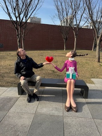Not sure who this funny looking character is. But he is standing next to that pink Haechi statue (a divine mythical beast known for its ability to see good and evil).